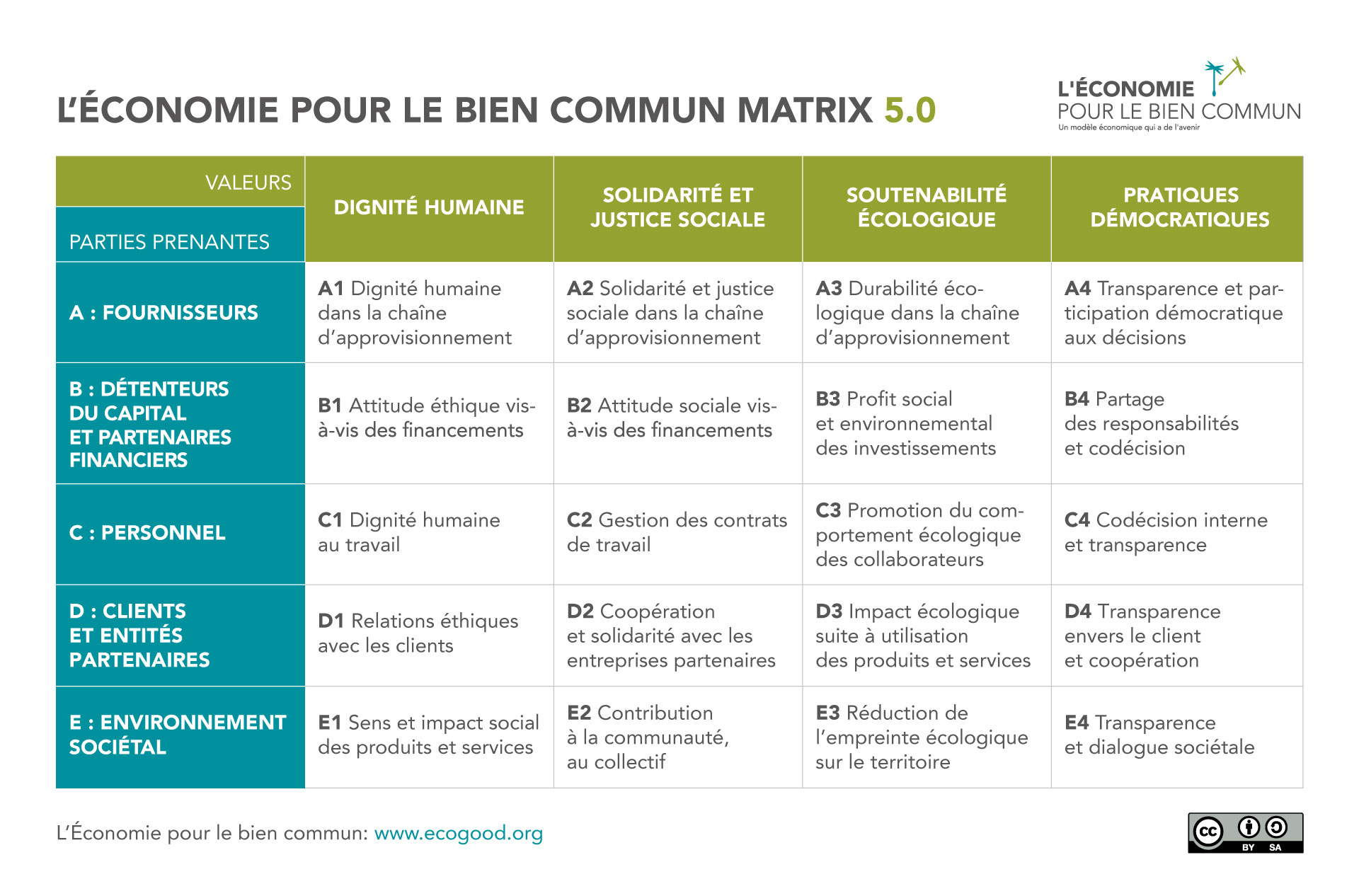 - Vous pourrez dresser un bilan du bien commun sur la base de cette matrice. Ce bilan est un rapport de durabilité reconnu et substantiel.